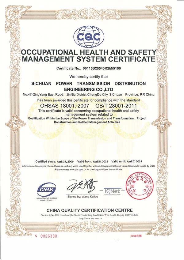 OCCUPATIONAL HEALTH AND SAFETY MANAGEMENT SYSTEM CERTIFICATE